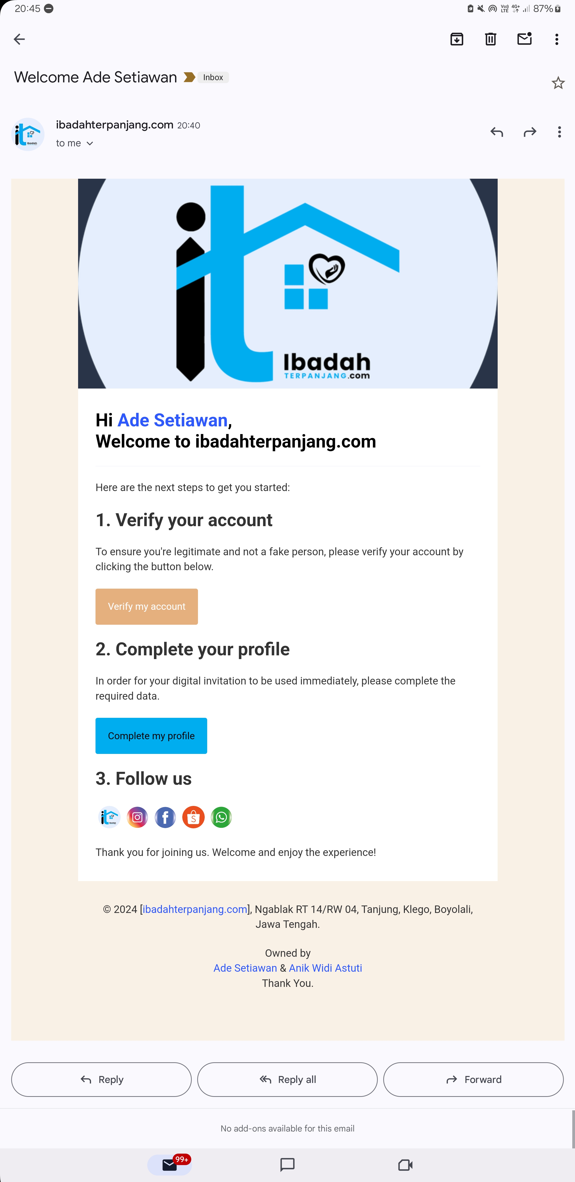 Setiap ucapan & doa yang dikirimkan oleh tamu akan langsung masuk ke email kamu